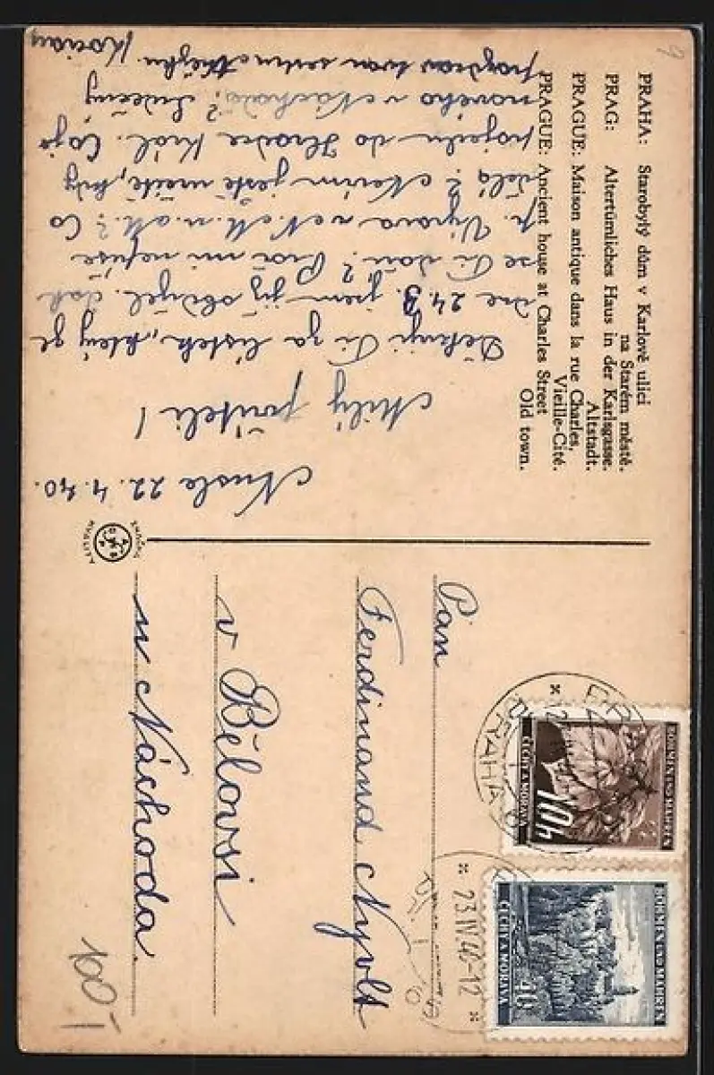 AK Prag / Praha, Starobylý dum v Karlové ulici