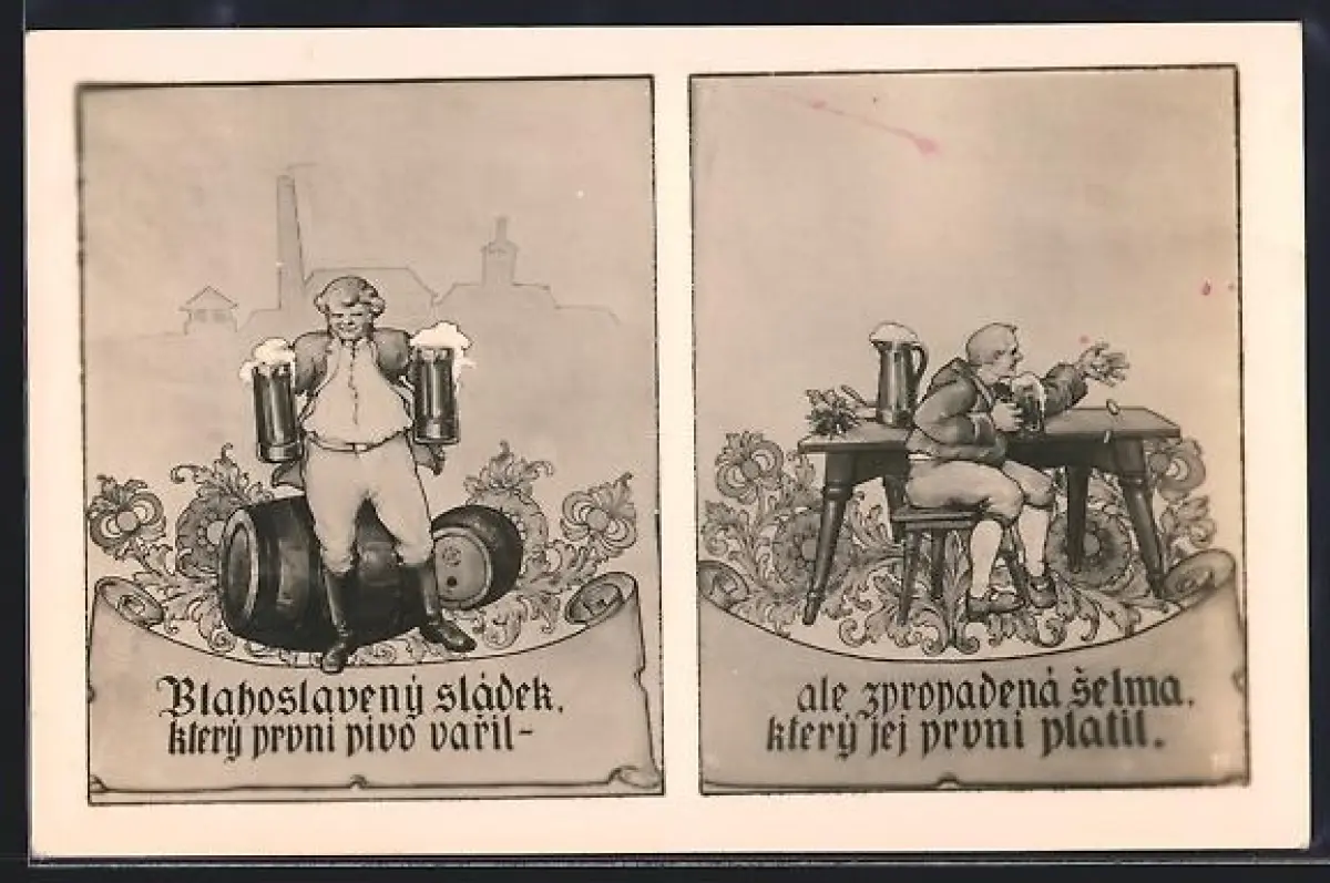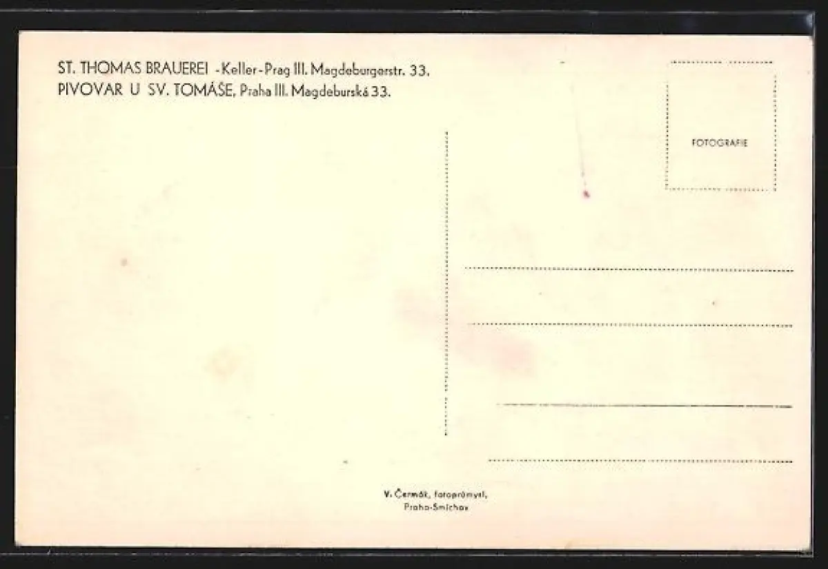 AK Prag, Restaurant St. Thomas Brauerei, Magdeburgerstrasse 33, Mann mit Bierkrug