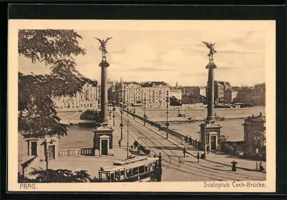 AK Prag, Svatopluk Chech-Brücke, Strassenbahn