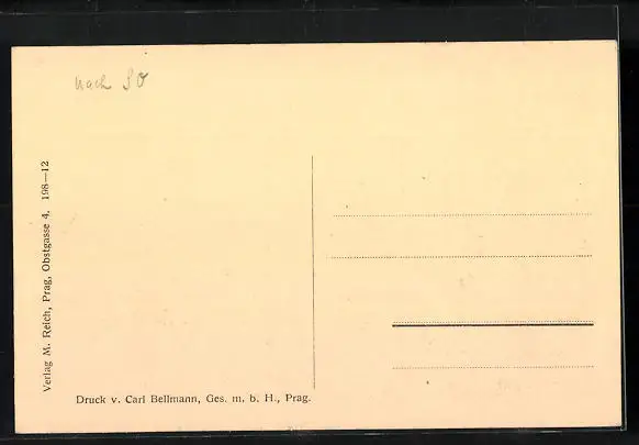 Personenbezogene Daten auf der Rückseite der Karte wurden durch blauen Textmarker unkenntlich gemacht. Die blauen Stellen sind auf die Vorderseite durchgeweicht und wirken sich negativ auf das Postkartenfoto aus