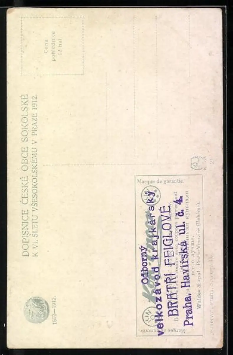 AK Prag, Vzlet Sokol, Mann mit Kranz in siegreicher Pose, Löwenstatue und Flagge neben ihm