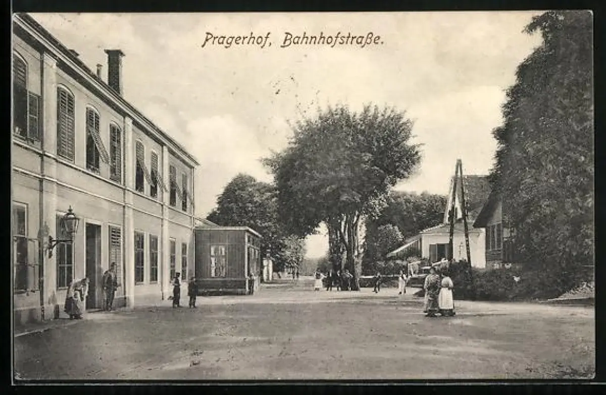 AK Pragerhof, Passanten in der Bahnhofstrasse