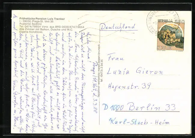 AK Prags-St. Veit, Frühstücks-Pension Luis Trenker