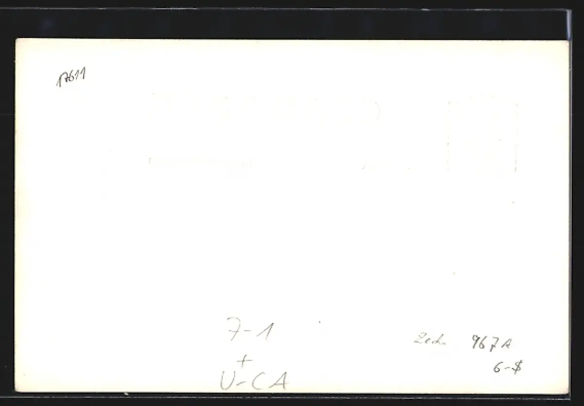 Personenbezogene Daten auf der Rückseite der Karte wurden durch blauen Textmarker unkenntlich gemacht. Die blauen Stellen sind auf die Vorderseite durchgeweicht und wirken sich negativ auf das Postkartenfoto aus