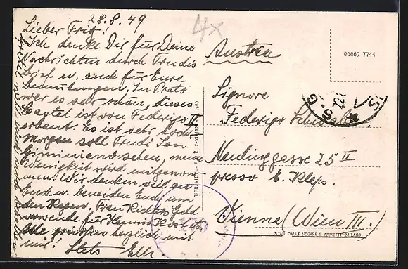 alte Ansichtskarte, gelaufen 1949, Briefmarke entfernt, guter Zustand