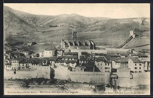 AK Prats-de-Mollo, Vue sur le village et Fort Lagarde dans les montagnes environnantes