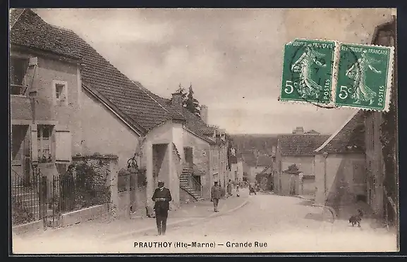 AK Prauthoy, Grande Rue avec passants et maisons anciennes