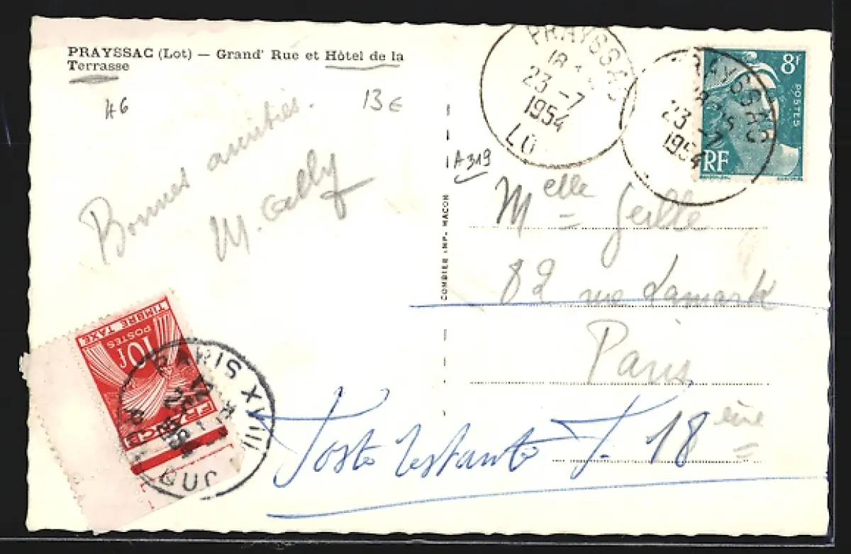 AK Prayssac, Lot, Grand`Rue et Hôtel de la Terrasse