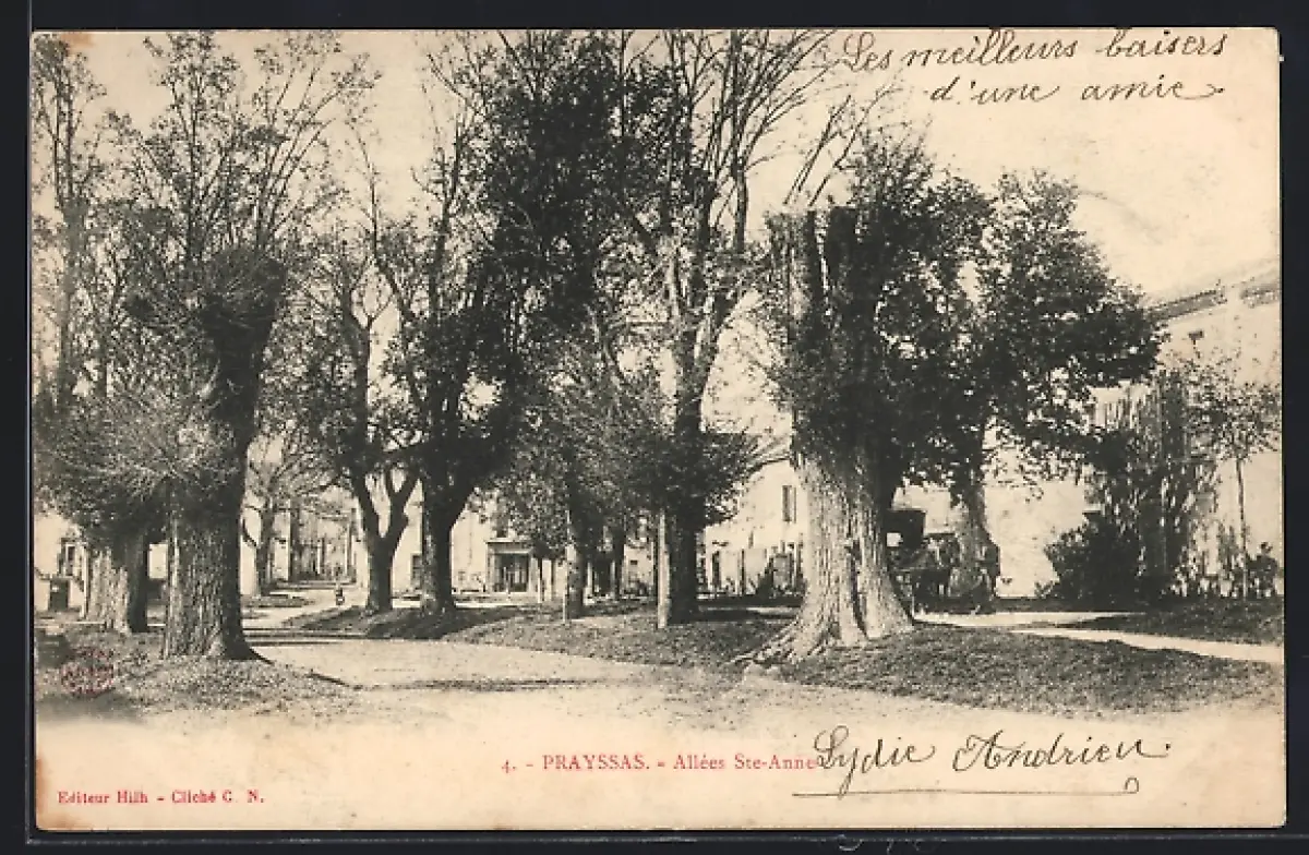 AK Prayssas, Allées Ste-Anne avec arbres majestueux et bâtiments d`époque