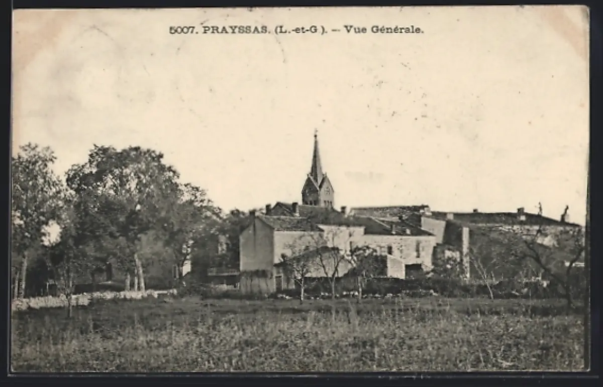AK Prayssas /L.-et-G., Vue générale du village et du clocher au milieu des arbres