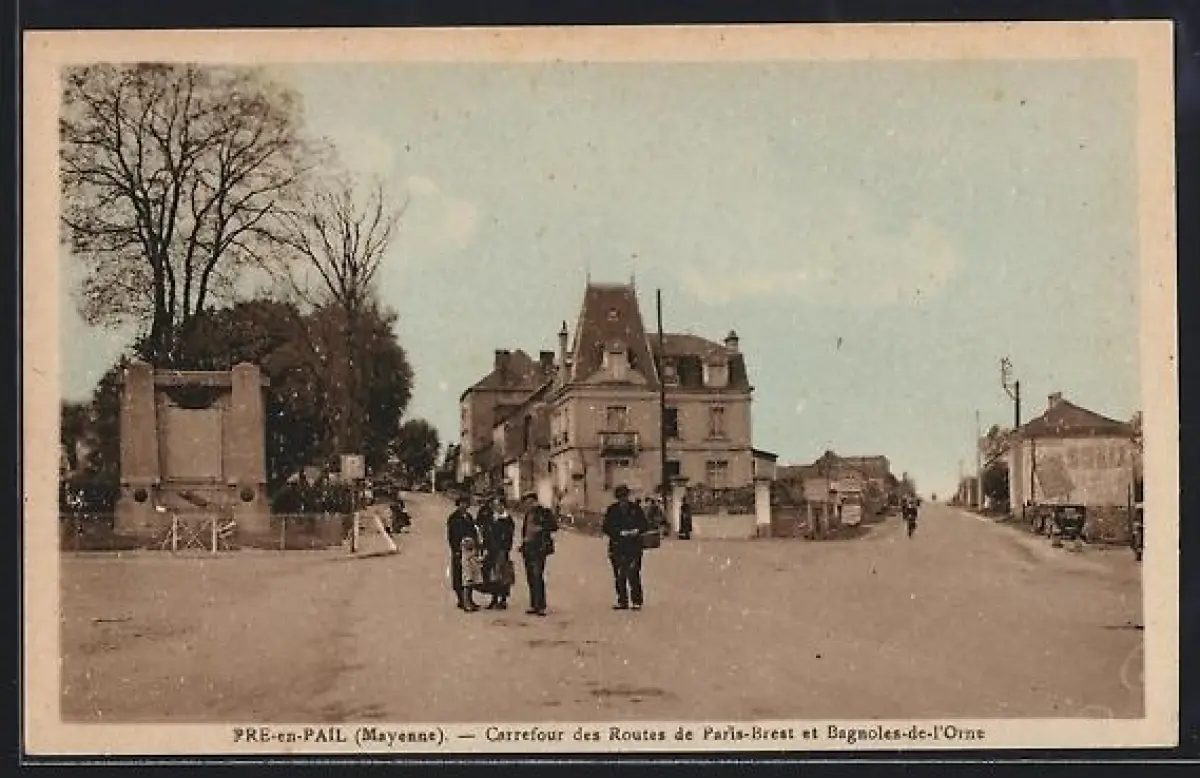 AK Pré-en-Pail /Mayenne, Carrefour des Routes de Paris-Brest et Bagnoles-de-l`Orne