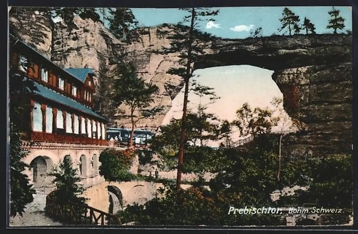 AK Prebischtor /Böhm. Schweiz, Blick auf eine natürliche Brücke