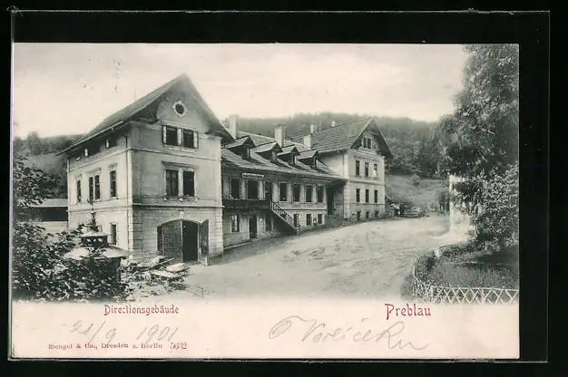 AK Preblau, Strassenpartie mit Directionsgebäude