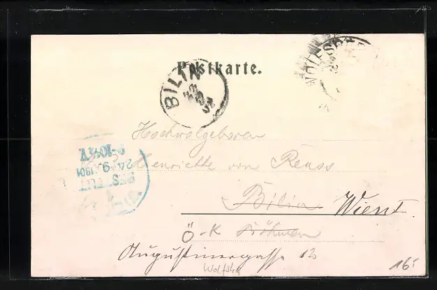 alte Ansichtskarte, gelaufen, Briefmarke entfernt, rückseitig Oberflächenschaden, guter Zustand