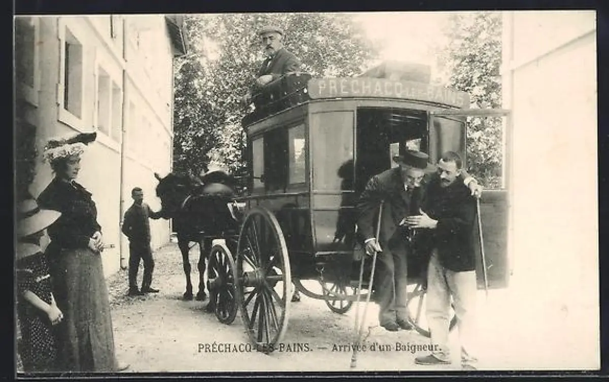 AK Préchacq-les-Bains, Arrivée d`un Baigneur en calèche à l`entrée d`un établissement thermal