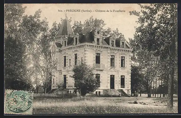 AK Précigné, Château de la Fusellerie entouré d`arbres