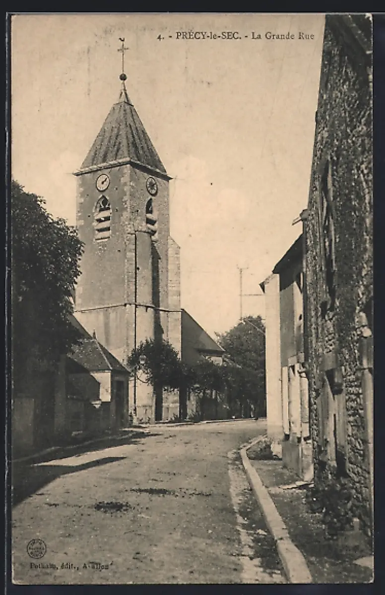 AK Précy-le-Sec, La Grande Rue avec l`église et maisons anciennes