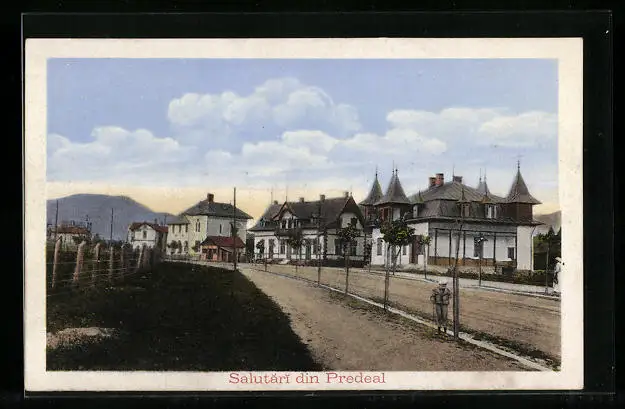 AK Predeal, Strassenpartie im Ort mit Wohnhäusern