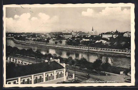 AK Prerov, Flusspartie mit Stadtansicht