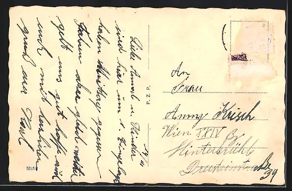 alte Ansichtskarte, gelaufen, Briefmarke entfernt, guter Zustand