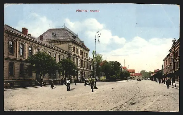 AK Prerov, Nádrazi, Strassenpartie am Bahnhof