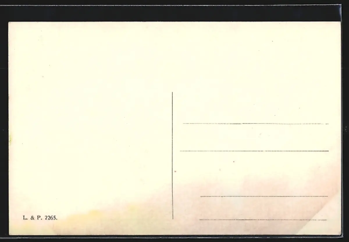 Personenbezogene Daten auf der Rückseite der Karte wurden durch blauen Textmarker unkenntlich gemacht. Die blauen Stellen sind auf die Vorderseite durchgeweicht und wirken sich negativ auf das Postkartenfoto aus