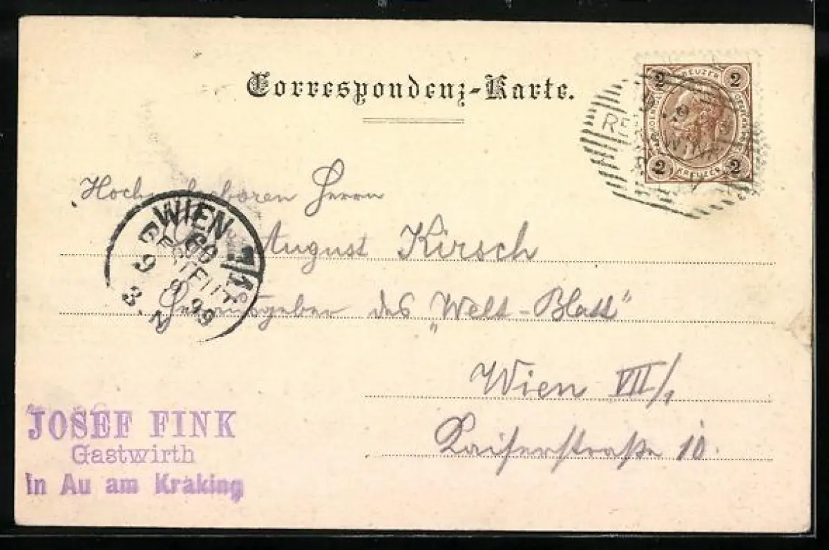 AK Pressbaum, Au am Kraking, Blick auf Finks Gasthaus