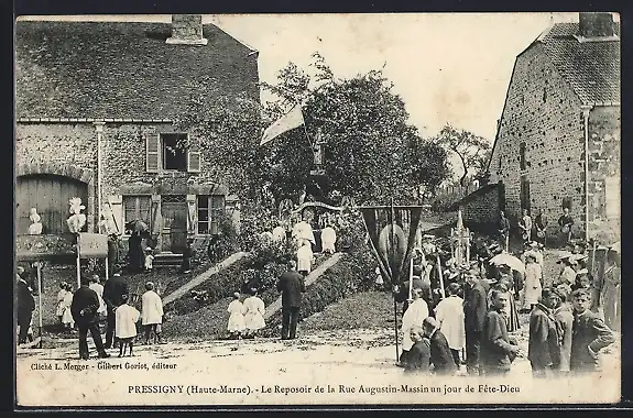 AK Pressigny /Haute-Marne, Le Reposoir de la Rue Augustin-Massin un jour de Fête-Dieu
