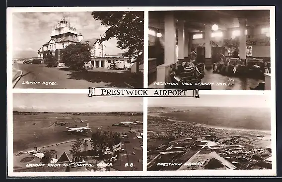 AK Prestwick Airport, Sight from the Control Tower, Airport Hotel outdoors and inside the Reception Hall, Ortsansichten