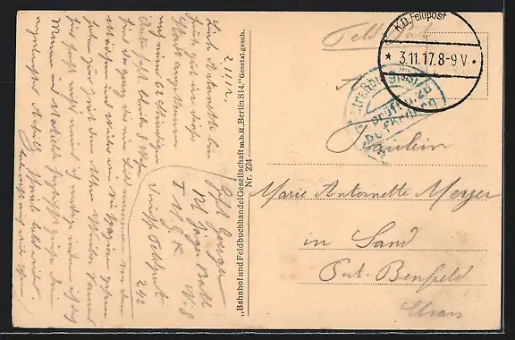 alte Ansichtskarte, gelaufen 1917, Eckknick re. unten, guter Zustand