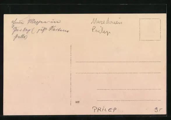 AK Prilep, Strassenpartie mit Gebäuden und Fussgängern