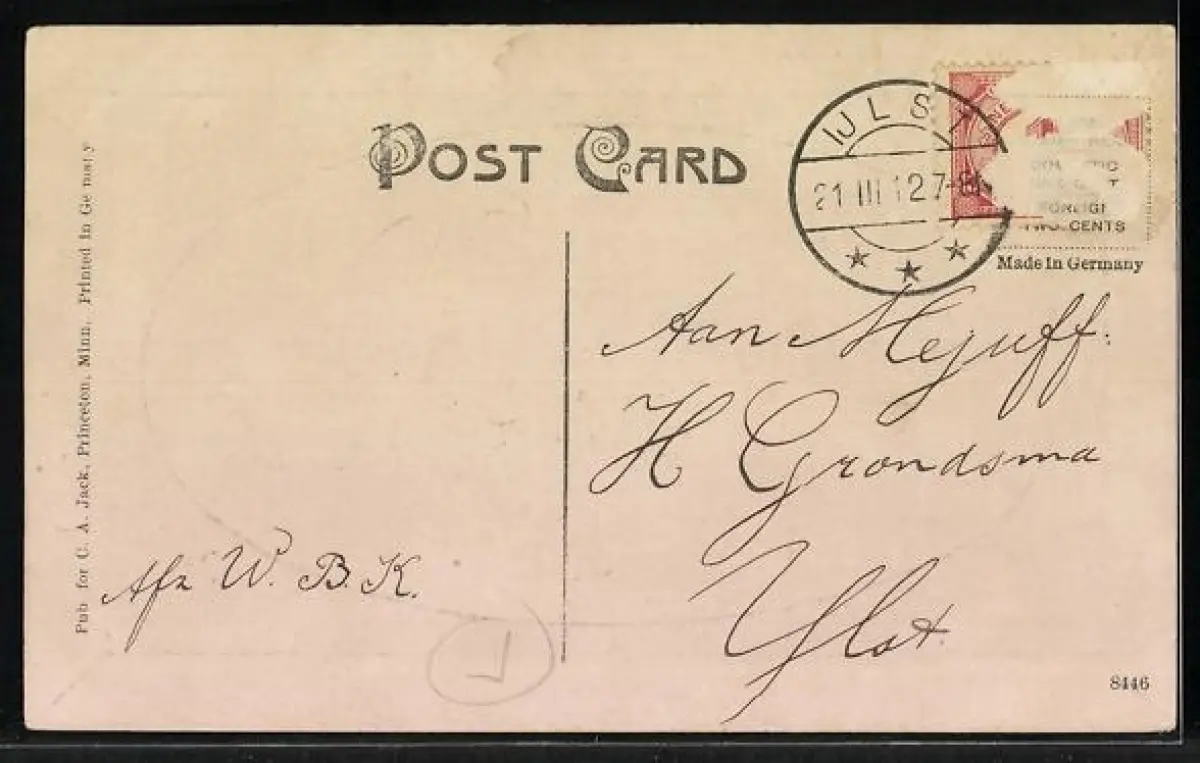 gelaufen 1927, Briefmarke entfernt, Abriebspur oben li., guter Zustand
