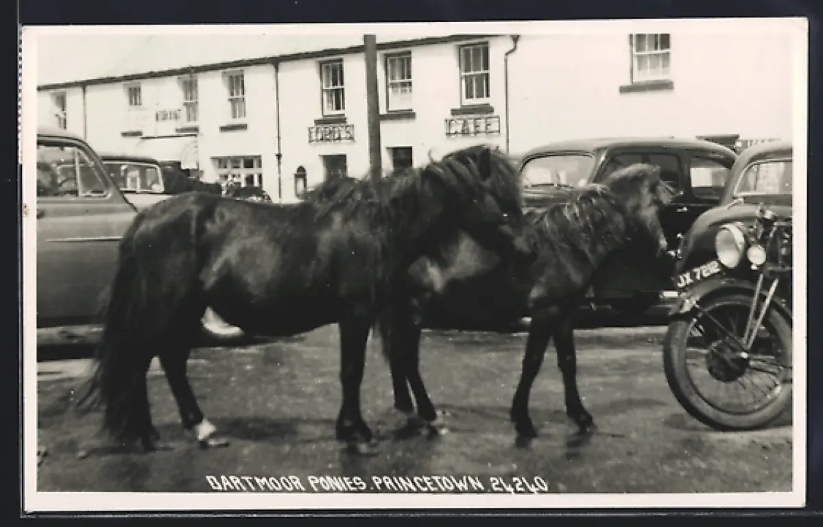 AK Princetown, Dartmoor Ponies in front of Ford`s Cafe