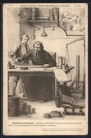 AK Principales Découvertes de l`Église, Système Métrique, Geistlicher mit einem Schüler