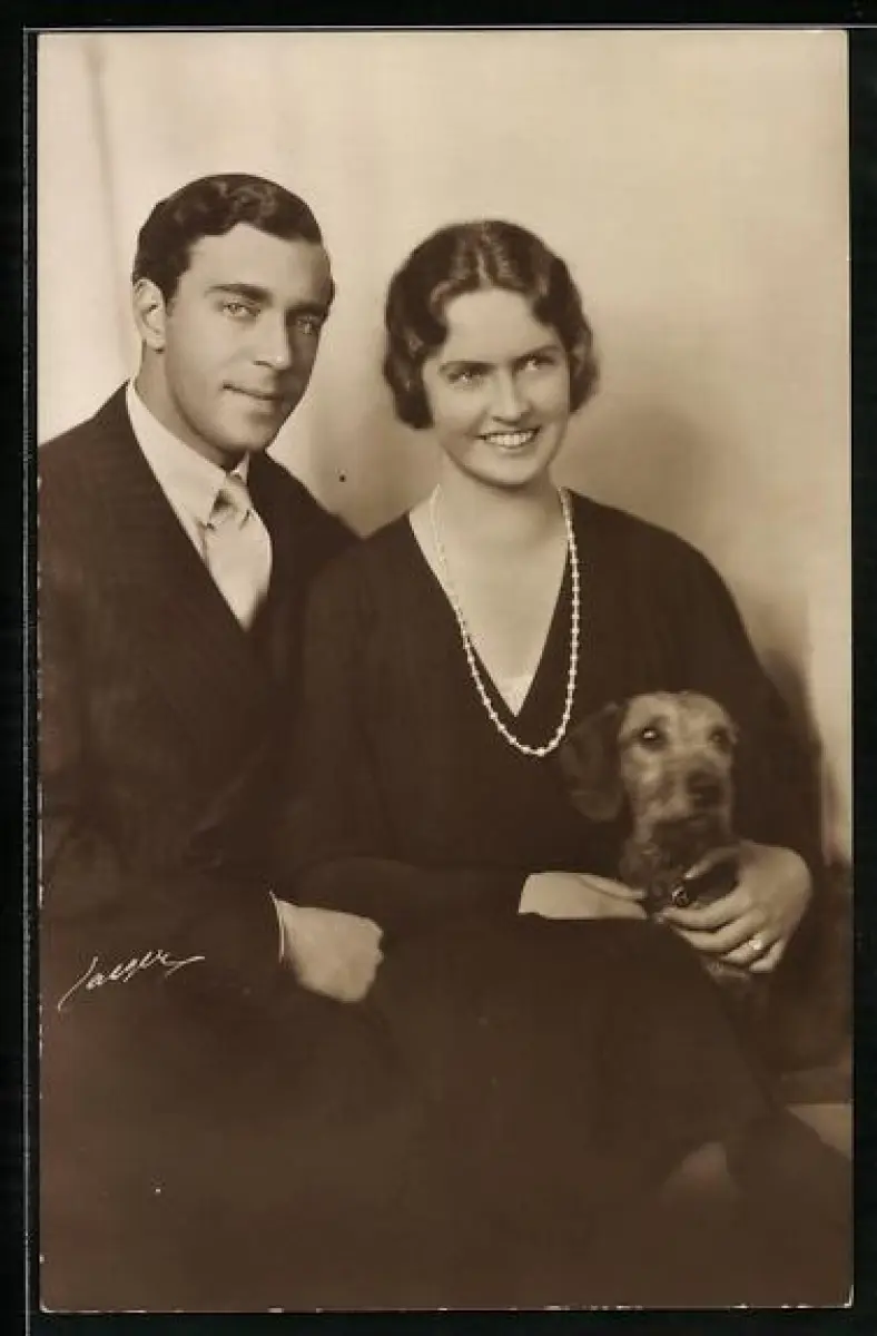 AK Prins Gustaf Adolf mit Prinsessan Sibylla mit Hund