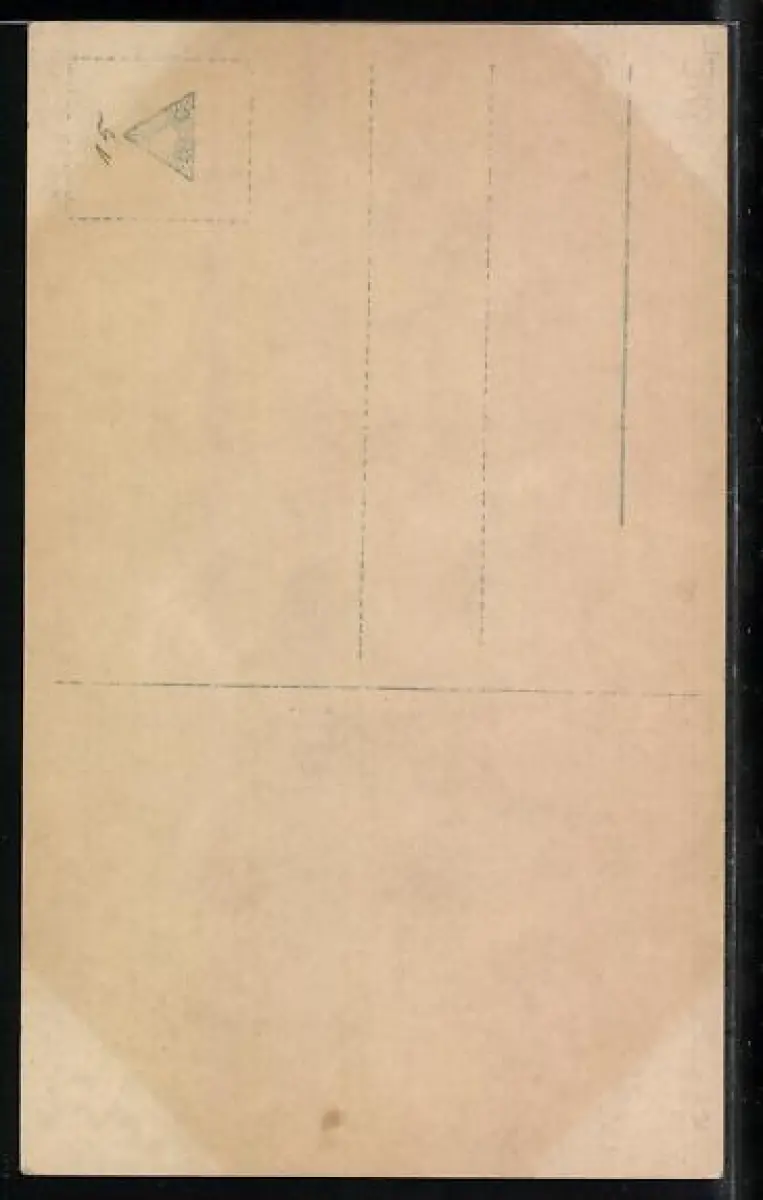 Personenbezogene Daten auf der Rückseite der Karte wurden durch blauen Textmarker unkenntlich gemacht. Die blauen Stellen sind auf die Vorderseite durchgeweicht und wirken sich negativ auf das Postkartenfoto aus