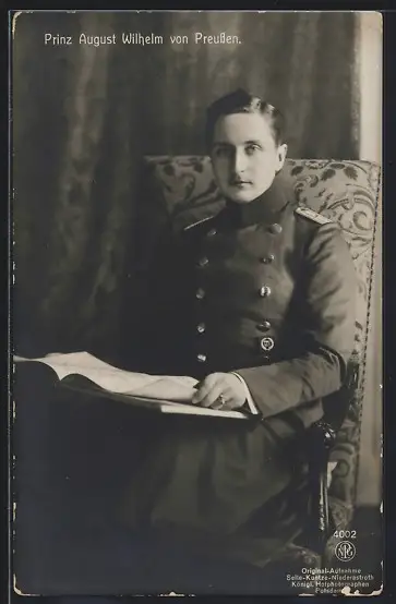 AK Prinz August Wilhelm von Preussen in jungen Jahren auf Sessel sitzend