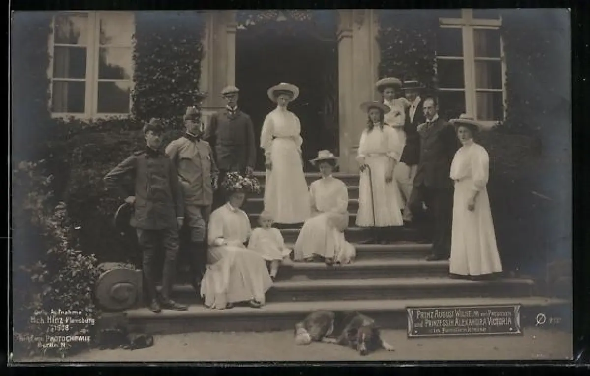 AK Prinz August Wilhelm von Preussen mit Prinzessin Alexandra Victoria im Familienkreise