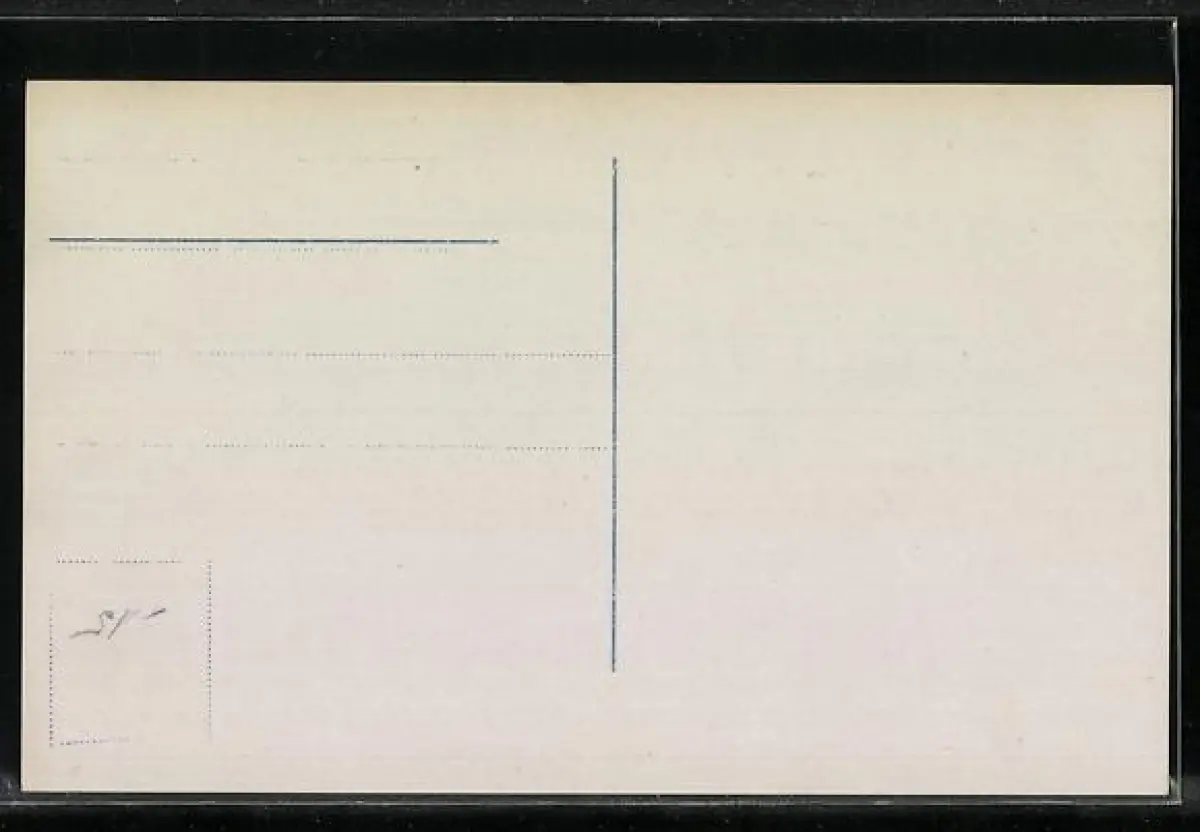Personenbezogene Daten auf der Rückseite der Karte wurden durch blauen Textmarker unkenntlich gemacht. Die blauen Stellen sind auf die Vorderseite durchgeweicht und wirken sich negativ auf das Postkartenfoto aus