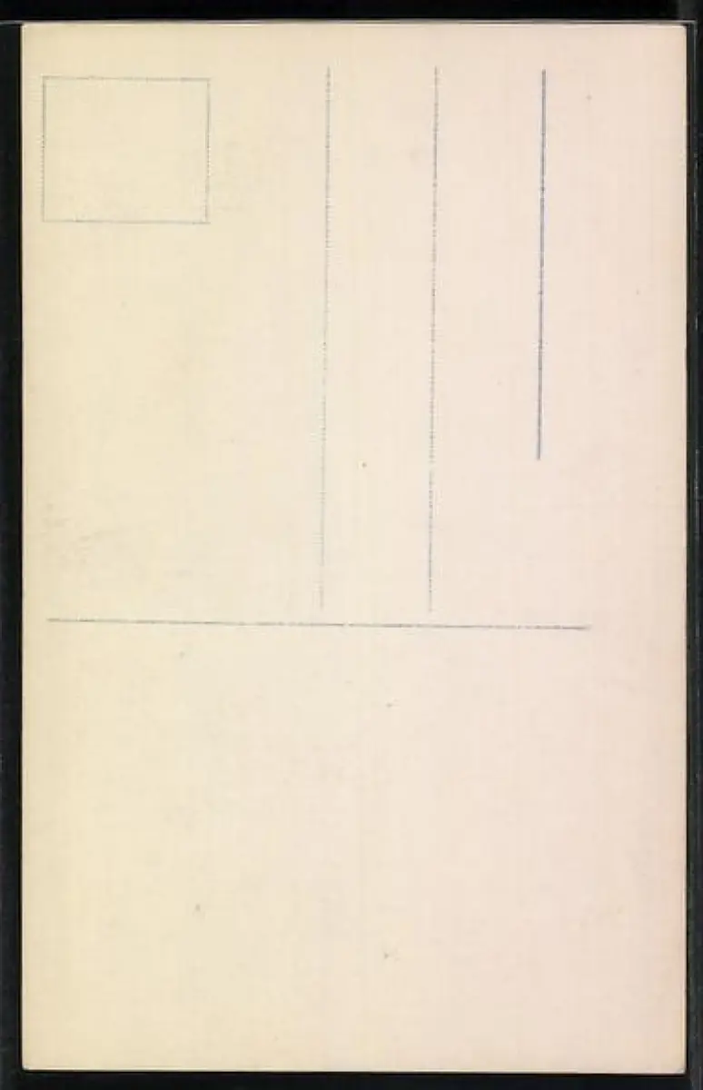 Personenbezogene Daten auf der Rückseite der Karte wurden durch blauen Textmarker unkenntlich gemacht. Die blauen Stellen sind auf die Vorderseite durchgeweicht und wirken sich negativ auf das Postkartenfoto aus
