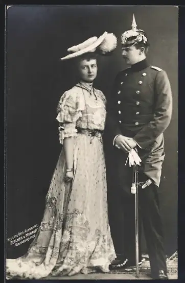 AK Prinz Eitel Friedrich von Preussen in Uniform mit Pickelhaube und seine Frau