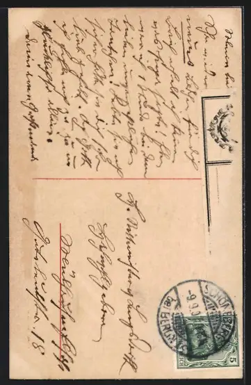 alte Ansichtskarte, gelaufen, rückseitig Klebe- und Papierreste, guter Zustand