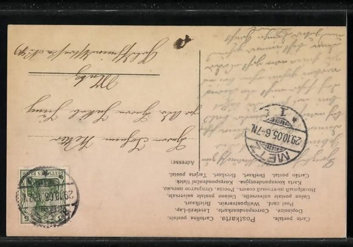alte Ansichtskarte, gelaufen 1905, Stempelspur, guter Zustand