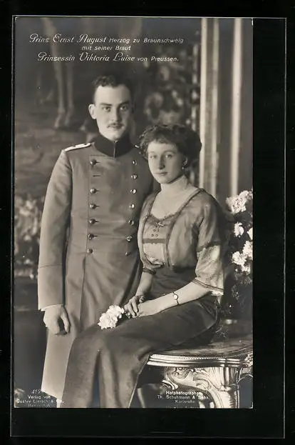 AK Prinz Ernst August Herzog zu Braunschweig mit seiner Braut Prinzessin Victoria Luise von Preussen