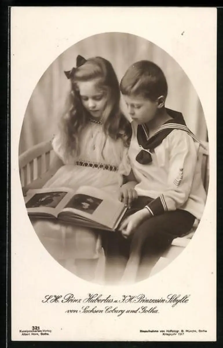 AK Prinz Hubertus und Prinzessin Sibylle von Sachsen-Coburg-Gotha blättern in einem Buch