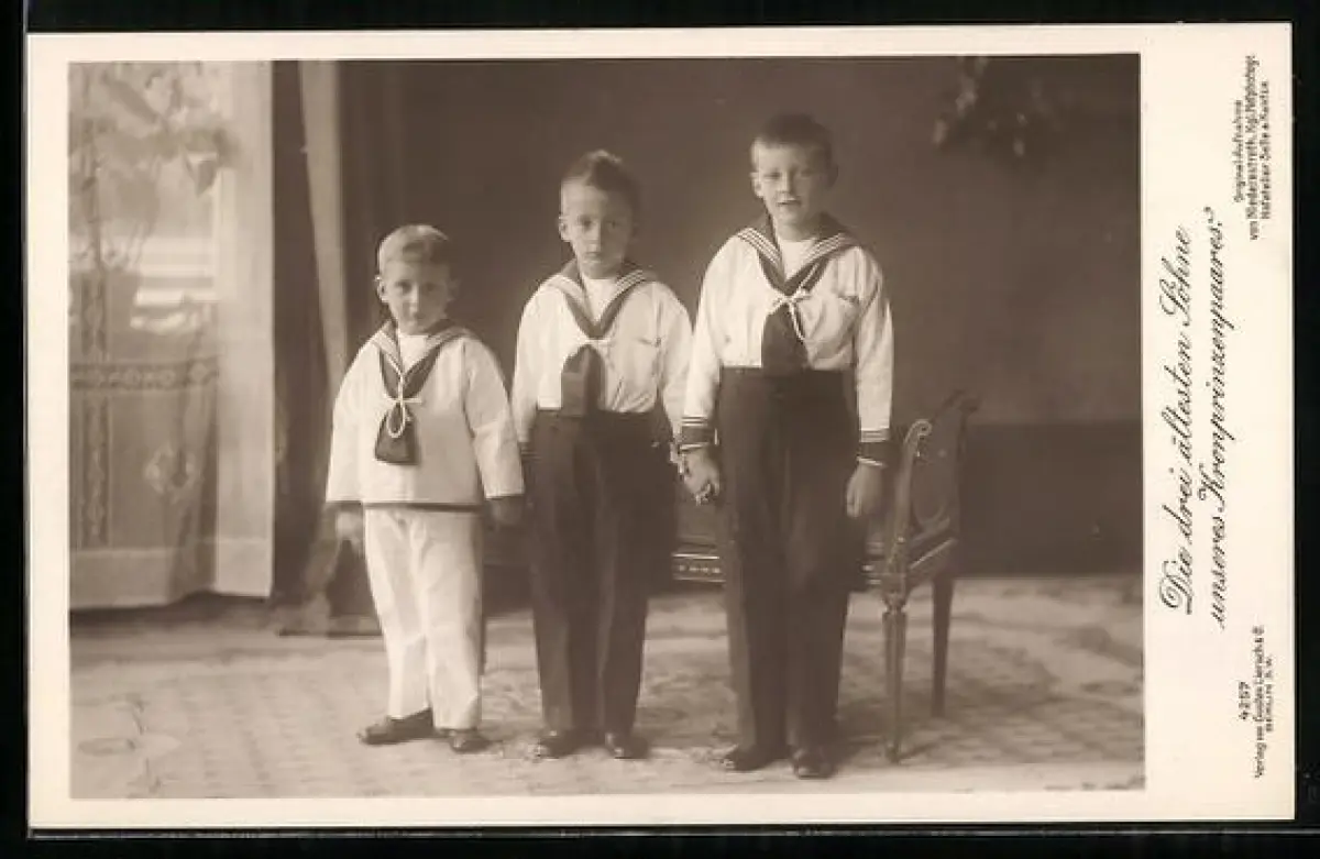 AK Prinz Hubertus von Preussen mit seinen beiden älteren Brüdern