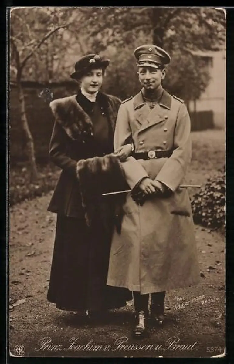 AK Prinz Joachim von Preussen u. Prinzessin Marie Auguste von Anhalt beim Spazierengehen