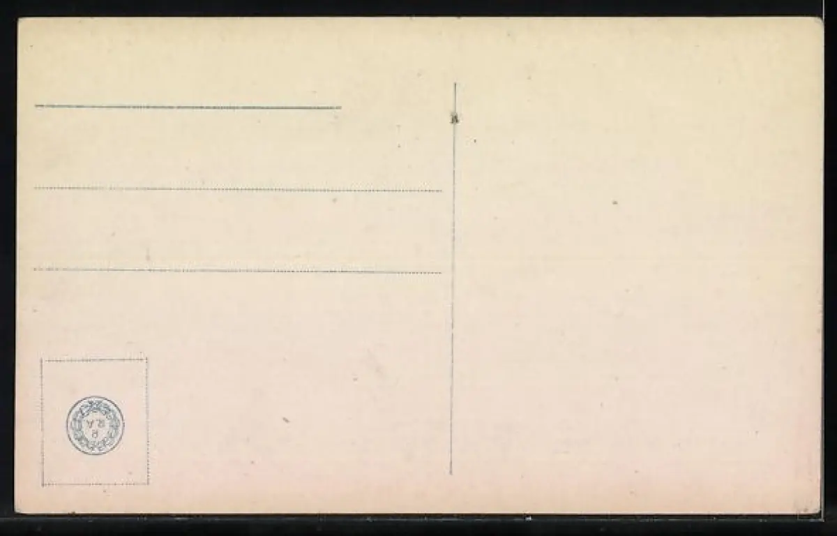 Personenbezogene Daten auf der Rückseite der Karte wurden durch blauen Textmarker unkenntlich gemacht. Die blauen Stellen sind auf die Vorderseite durchgeweicht und wirken sich negativ auf das Postkartenfoto aus