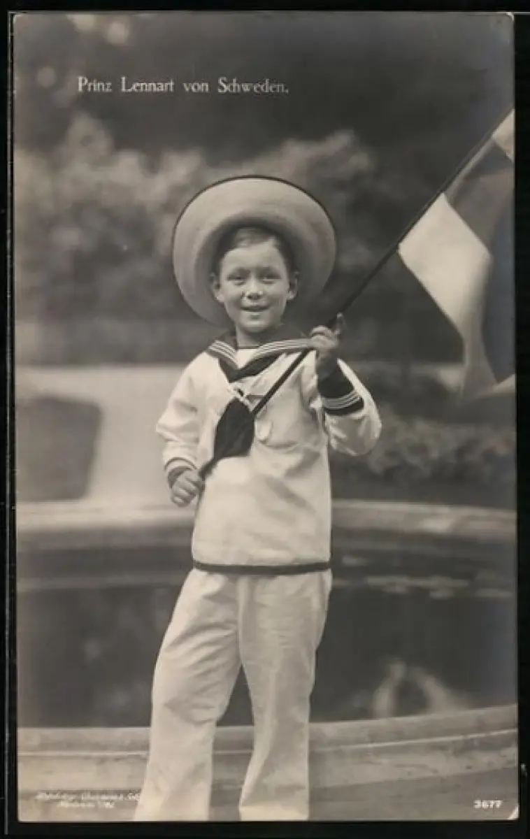 AK Prinz Lennart von Schweden im Matrosen-Anzug mit Flagge
