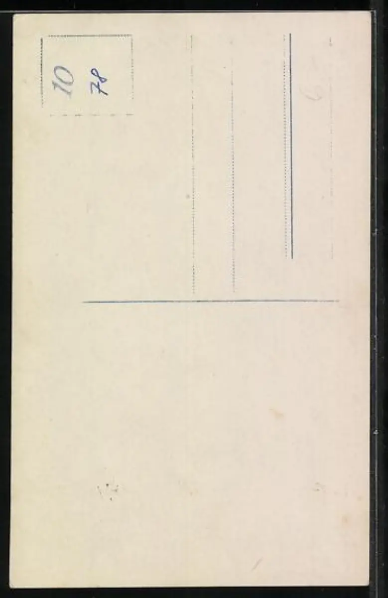 Personenbezogene Daten auf der Rückseite der Karte wurden durch blauen Textmarker unkenntlich gemacht. Die blauen Stellen sind auf die Vorderseite durchgeweicht und wirken sich negativ auf das Postkartenfoto aus